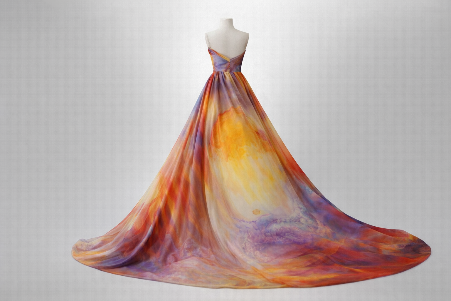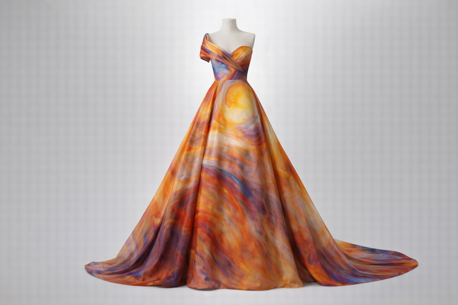 Flux interne, œuvre unique peinte à l’huile, dont les motifs sont transposés sur tissu haute couture, dans une recherche d’élégance.
