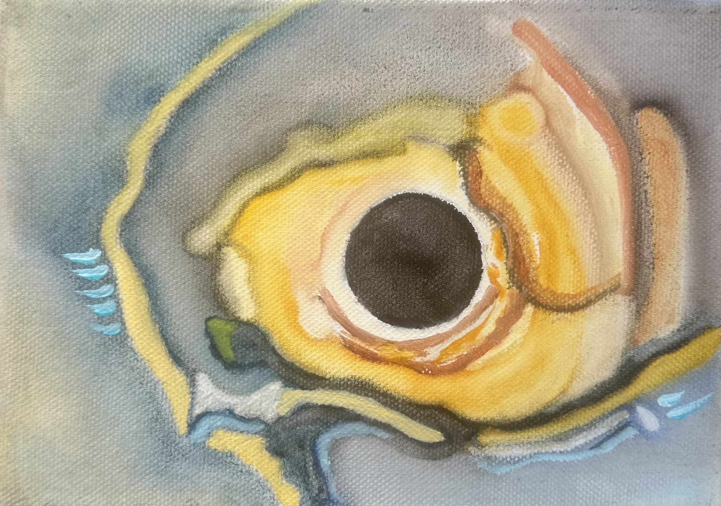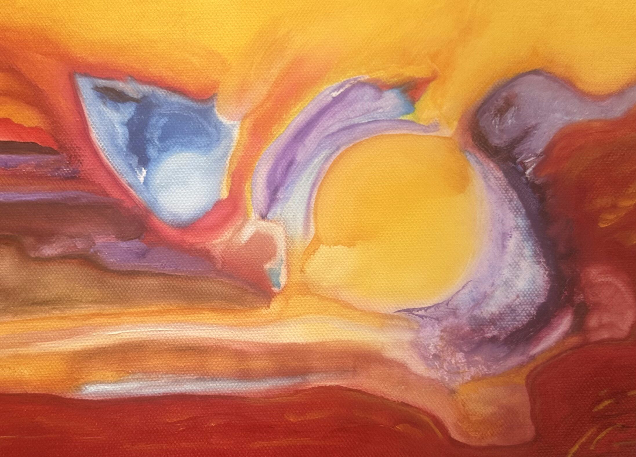 Gravité, œuvre unique peinte à l’huile, dont les motifs sont transposés en objet, dans une recherche de matière et de sens.